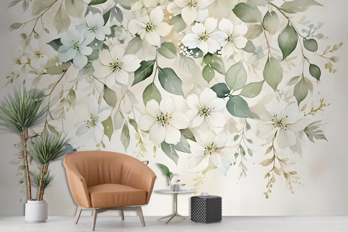 Aquarell Weiche Blumen Mit Grünen Blättern Wandbild