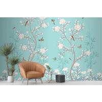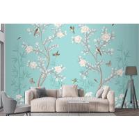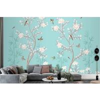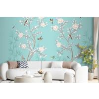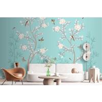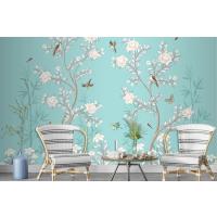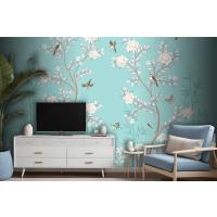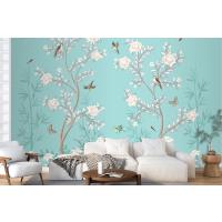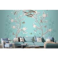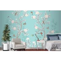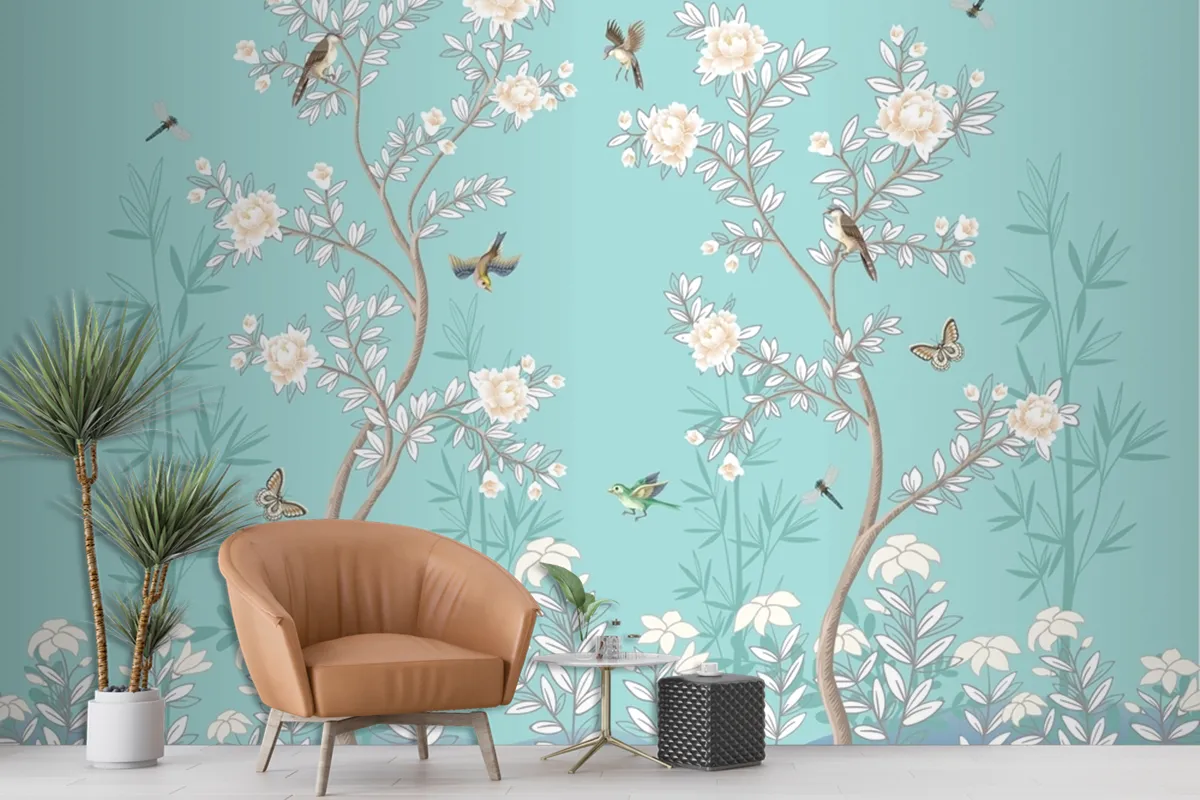 Chinoiserie Wandbild Mit Pfingstrosen Und Vögeln Türkis Fototapete
