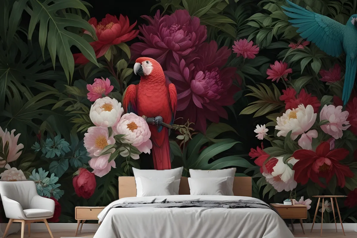 Digitales Gemälde Eines Lebendigen Tropischen Blumenarrangements Als Fototapete