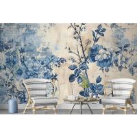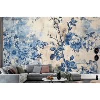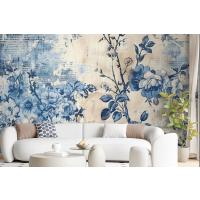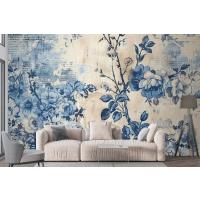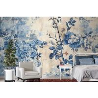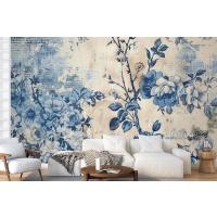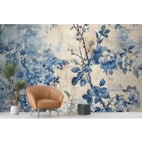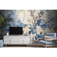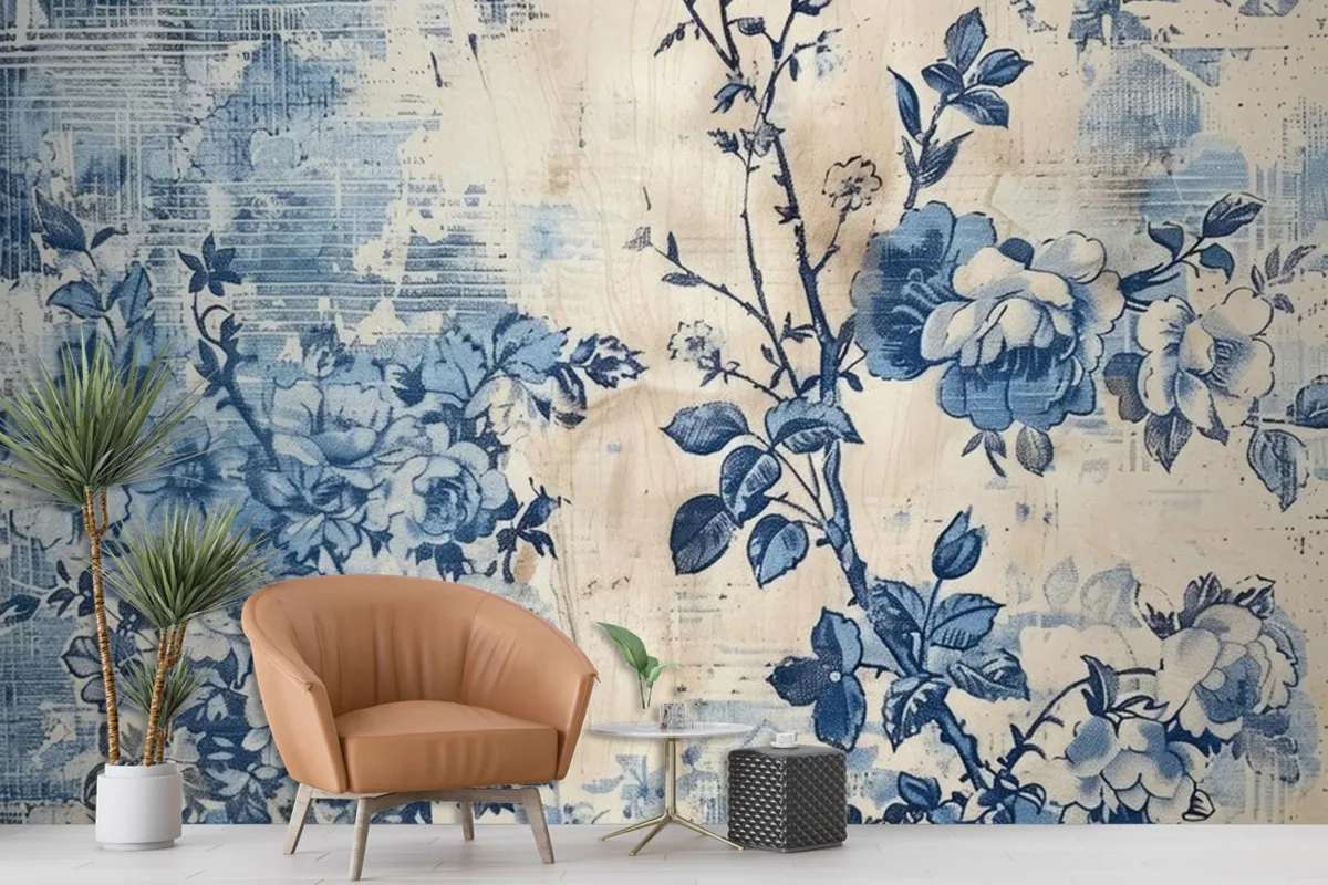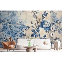Ein BlauWeißer Blumendruck Befindet Sich Auf Einem BlauWeißen Tapetenwandbild
