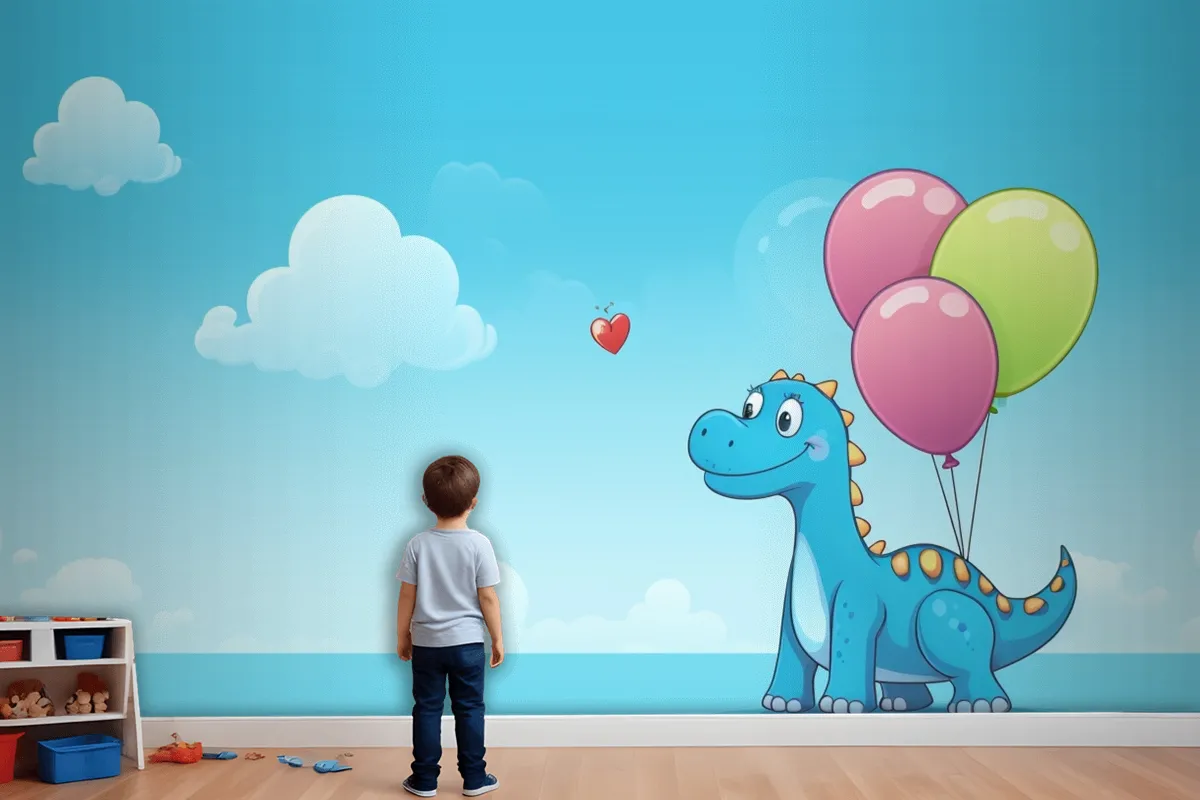 Ein Drache Mit Luftballons Im Himmel Und Einem Herz In Der Fototapete