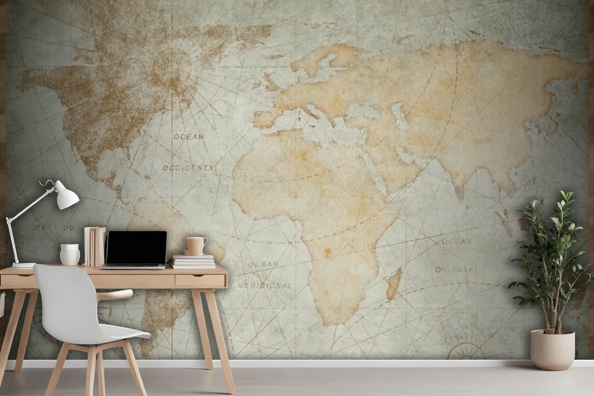 Fototapete Abgenutzte VintageWeltkarte In Blau