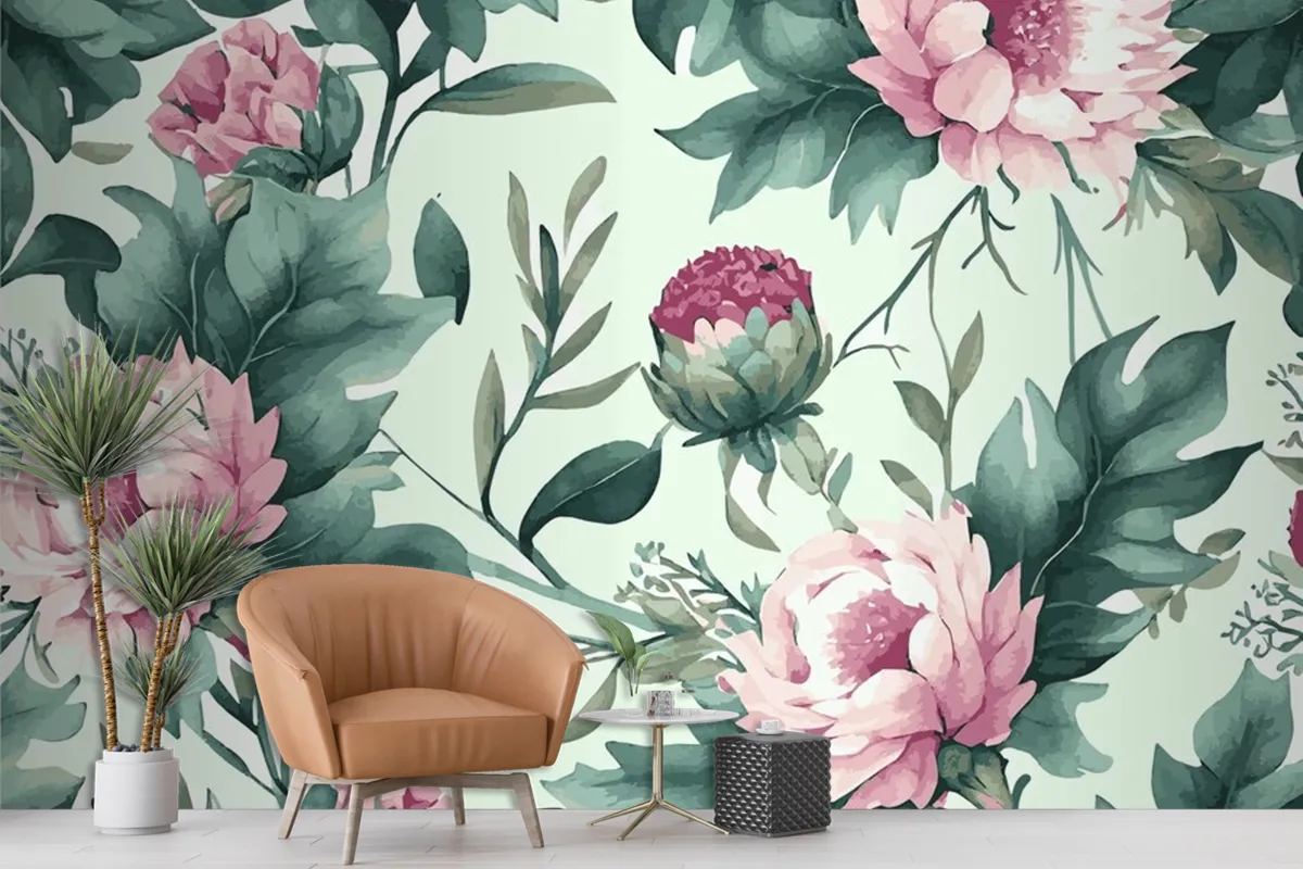 Fototapete Abstrakte Blumenkunst Botanische Aquarellblumen Handgezeichnet