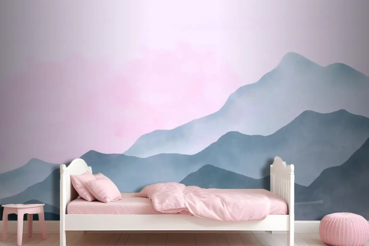 Fototapete Aquarell Berge Hintergrund Mit Rosa Himmel