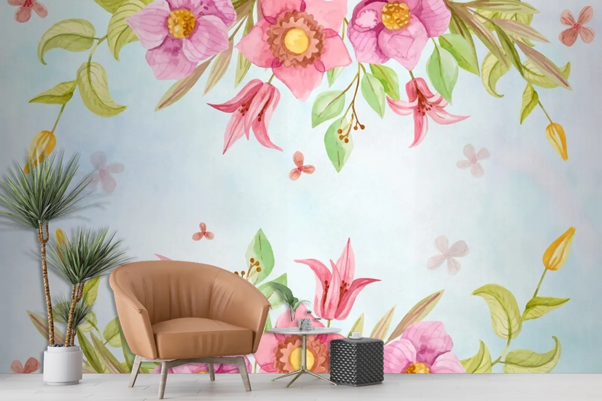 Fototapete Aquarell Blumen Hintergrund In Pastellfarben