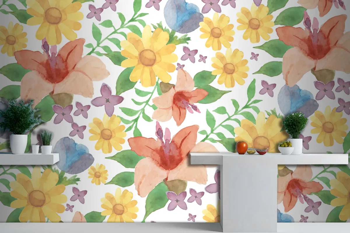 Fototapete Aquarell Blumenhintergrund Mit Lilien