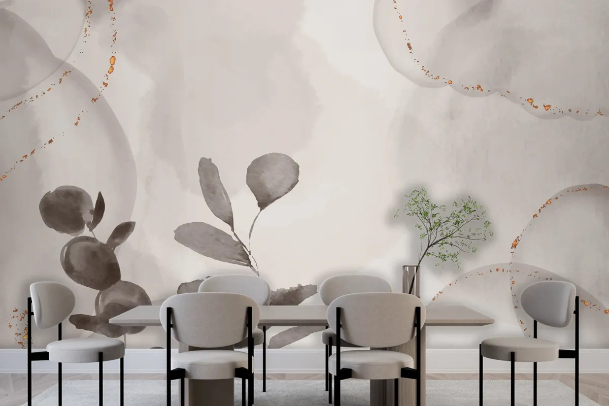 Fototapete Aquarell Handgezeichneter Hintergrund Mit Blättern