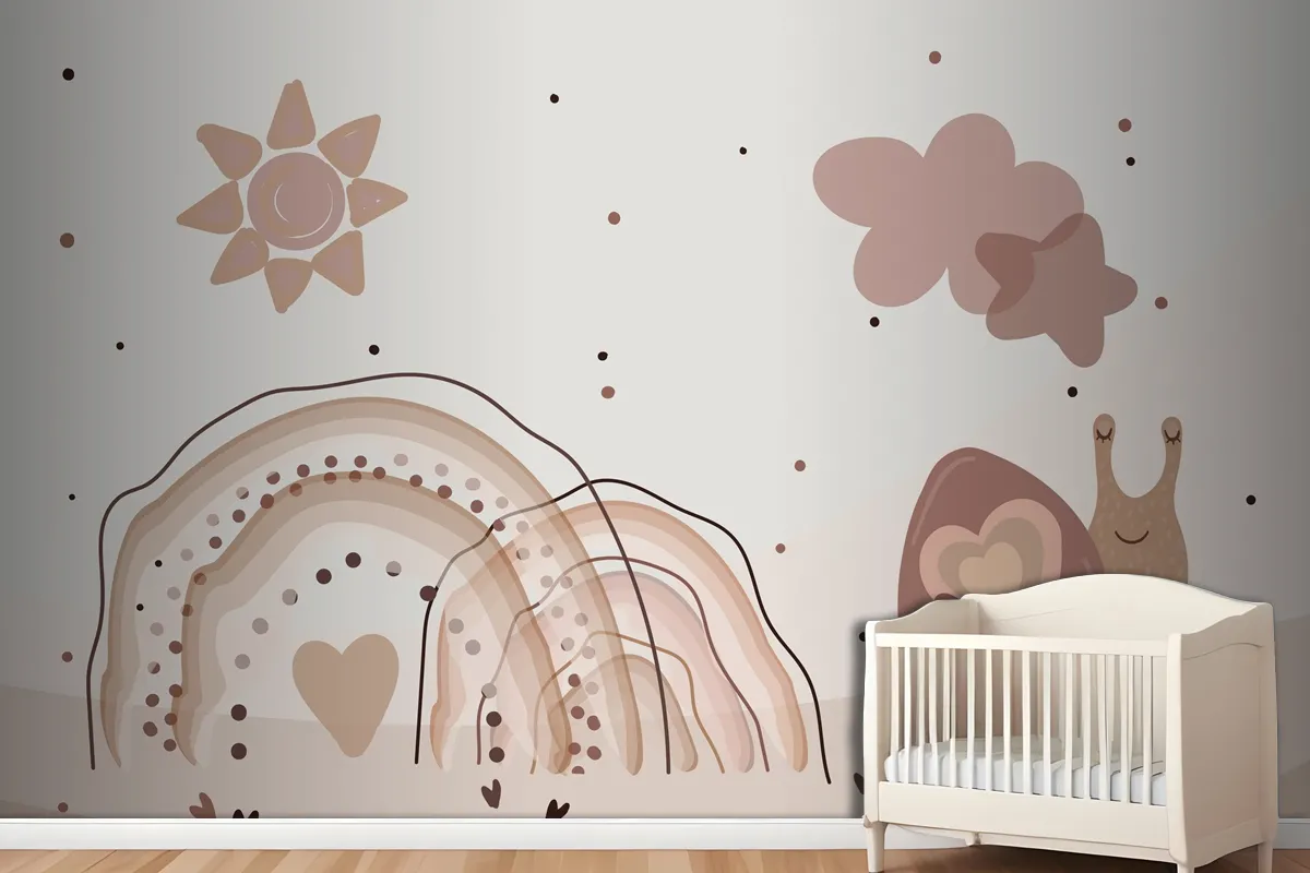 Fototapete Aquarell Regenbogen Und Schnecken Beige