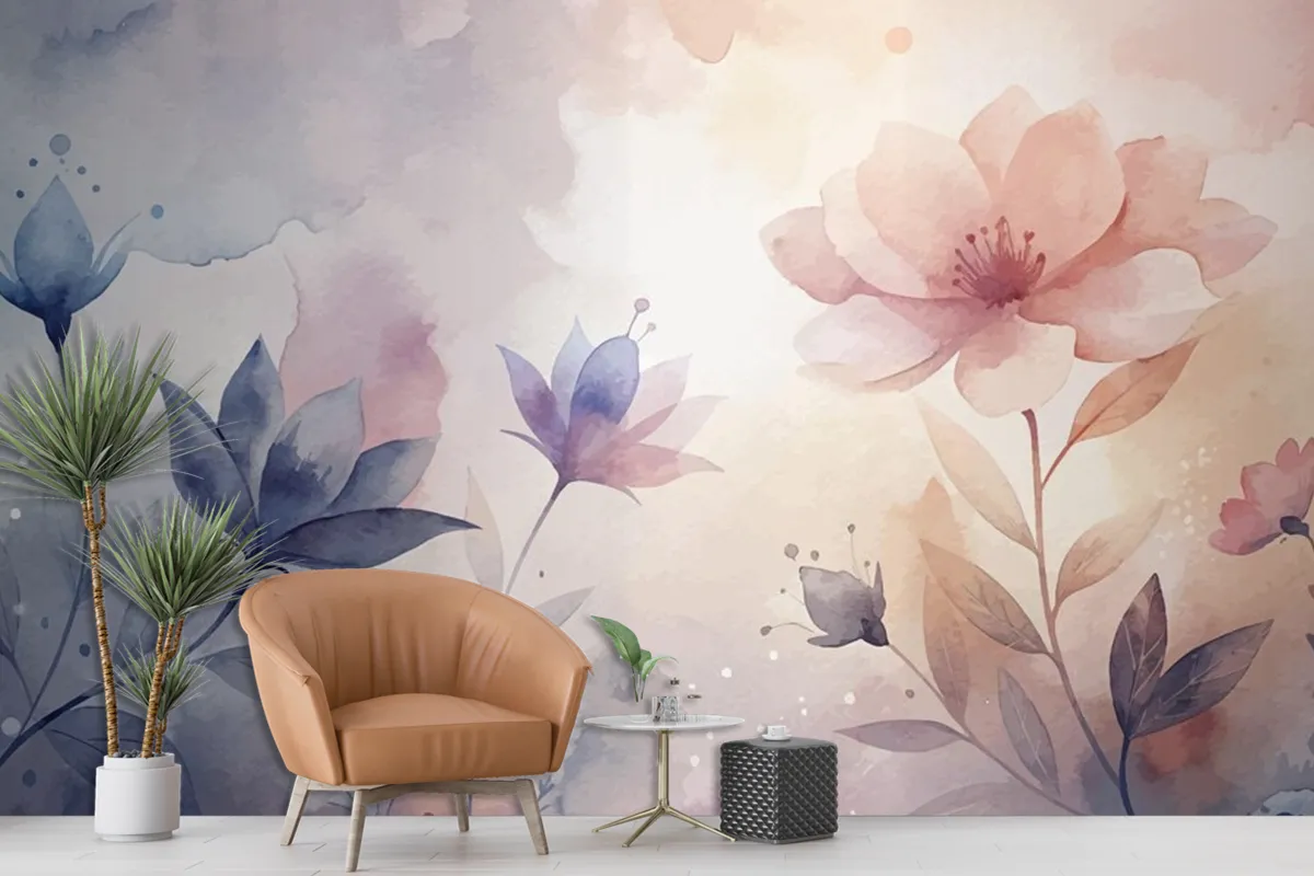 Fototapete AquarellHintergrund Mit Minimalistischen Weichen Blumensilhouetten