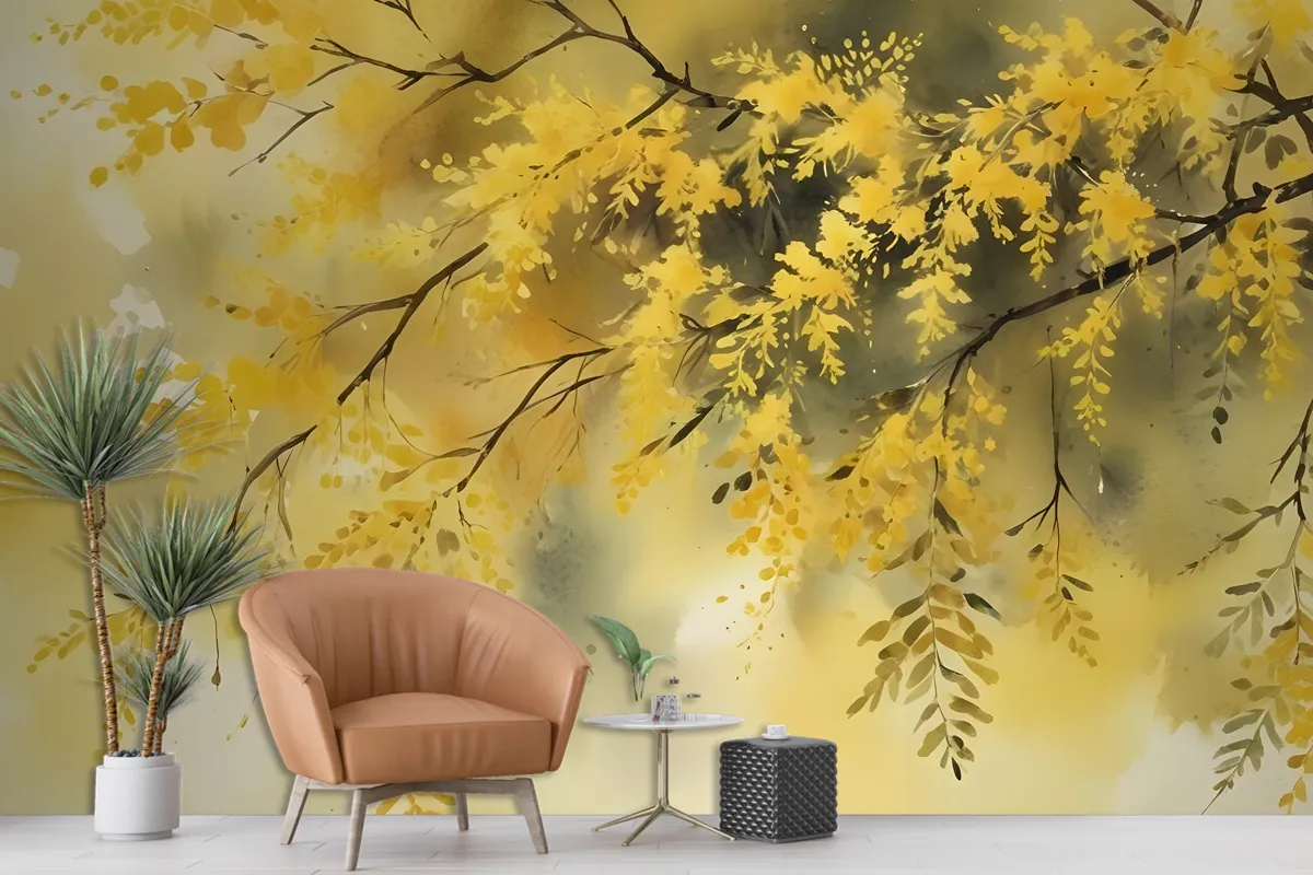 Fototapete AquarellLandschaft Mit Gelben Bäumen
