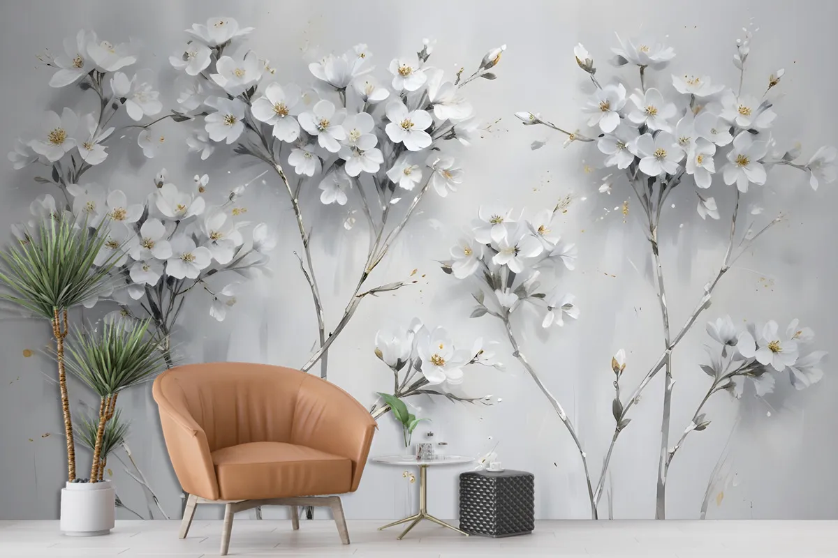 Fototapete Aquarellmalerei Weiße Blumen