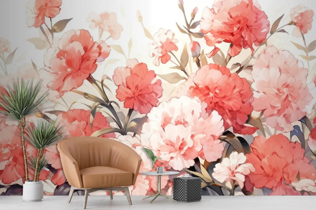Fototapete AquarellNelkenmuster Im VintageStil Mit Komplementärfarben