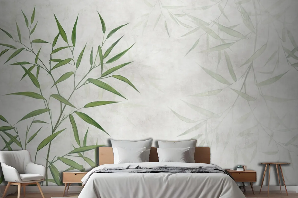 Fototapete Bemalte Bambusblätter Auf Strukturiertem Hintergrund