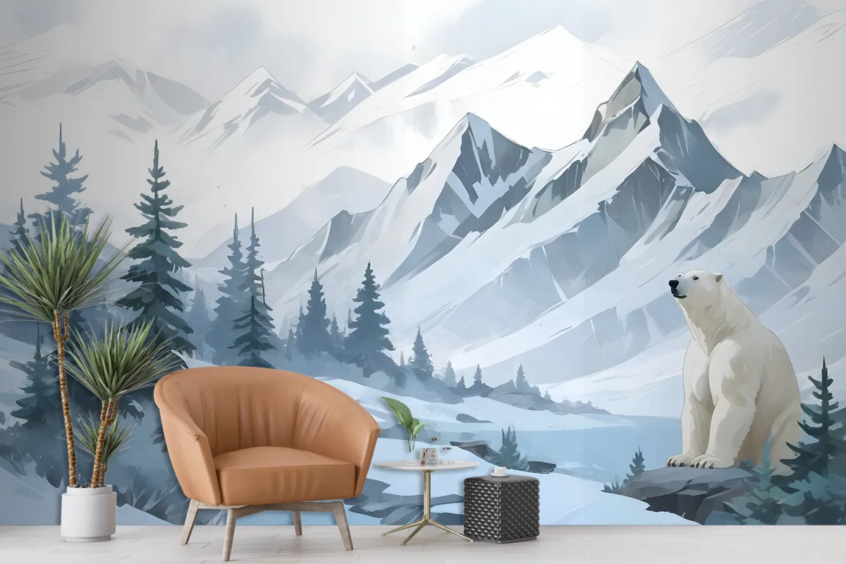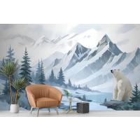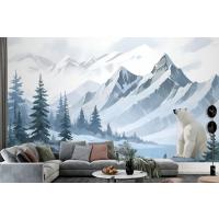 Fototapete Berglandschaft Mit CartoonBär Für Kinder