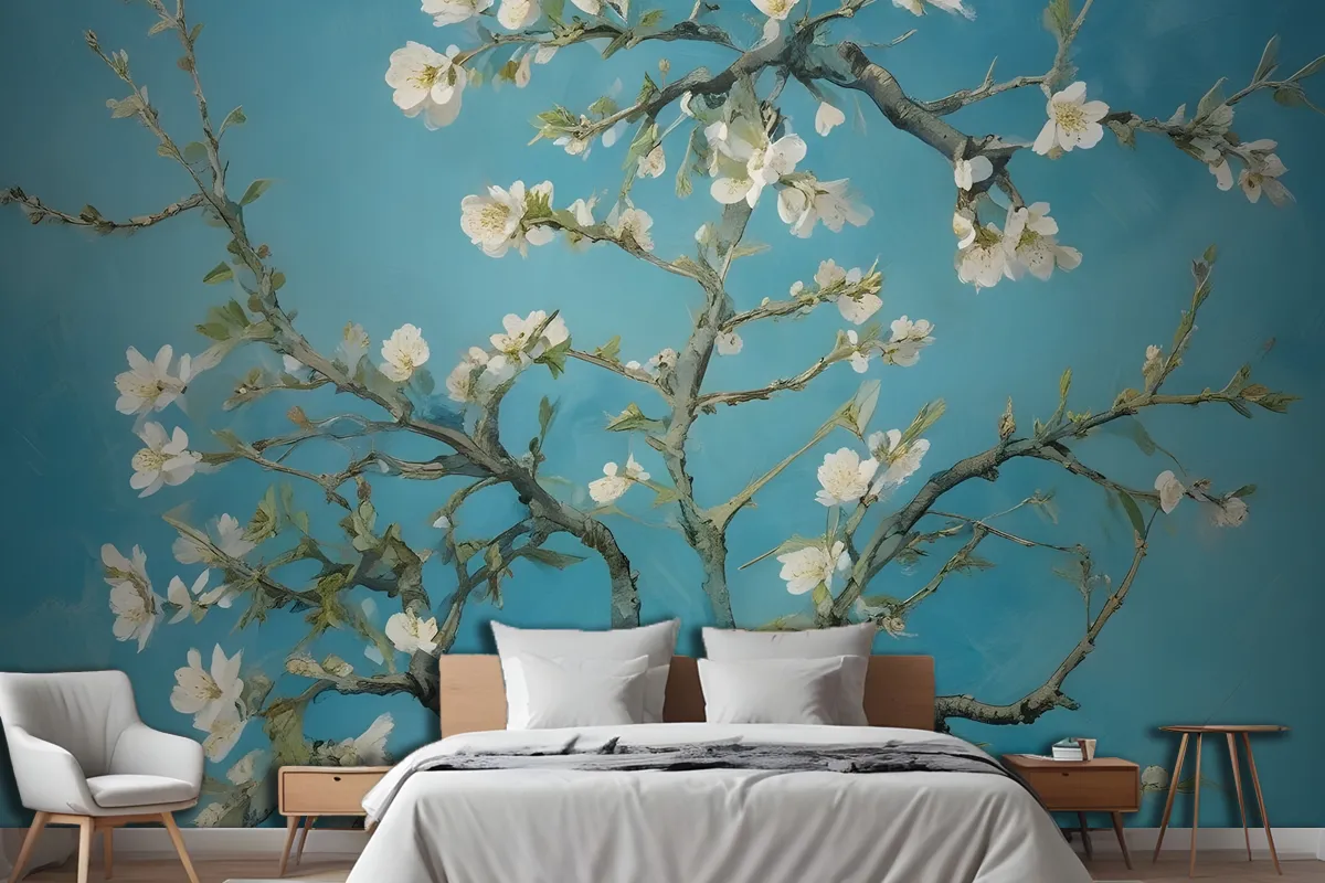 Fototapete Blühende Mandelbaumzweige Vor Blauem Himmel