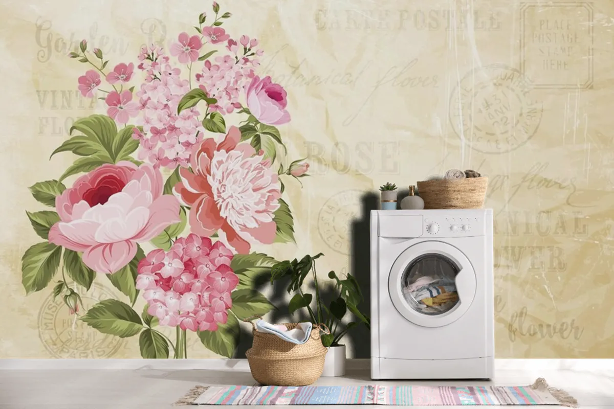 Fototapete Blumengirlande Auf Zerknülltem Papier