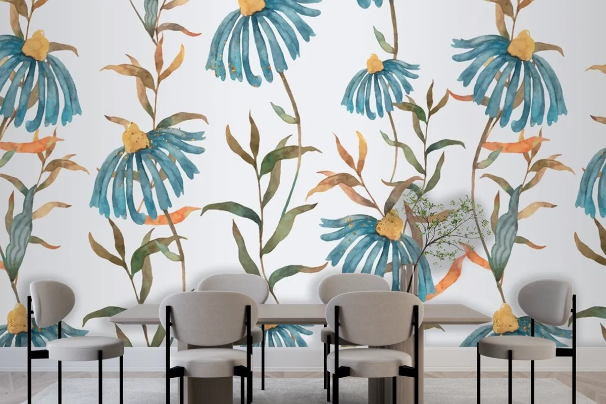 Fototapete Blumenmuster Hintergrund Mit Blauen Aquarellblumen