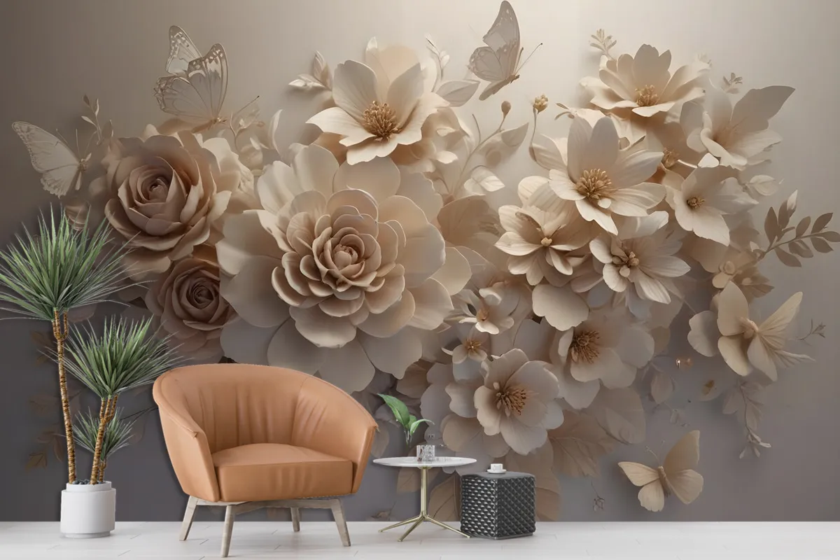 Fototapete Blumenmuster Mit Kunstprägung Im 3DLook