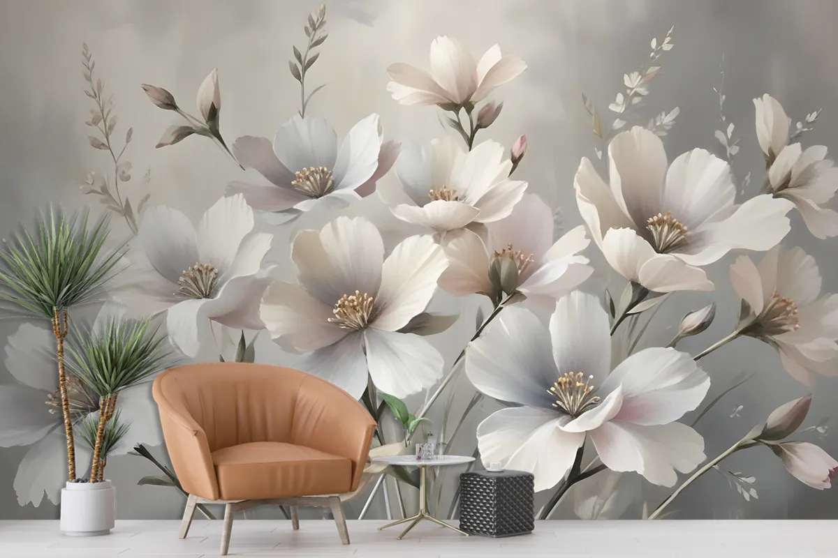 Fototapete Blumenmuster Mit Ölgemälde In Pastell