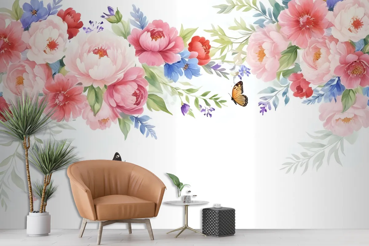 Fototapete Blumenranken Im BohoStil In Rosa