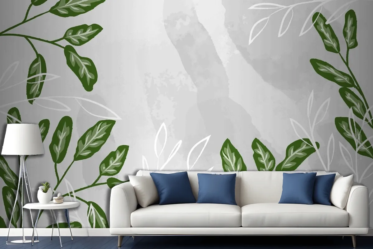 Fototapete Detaillierte Blätter Mit Aquarellfarben Für Das Wohnzimmer