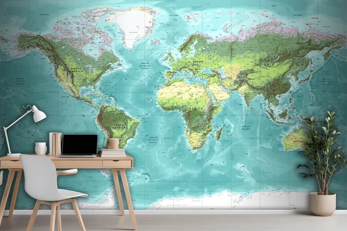 Fototapete Detaillierte Physische Weltkarte In MillerProjektion