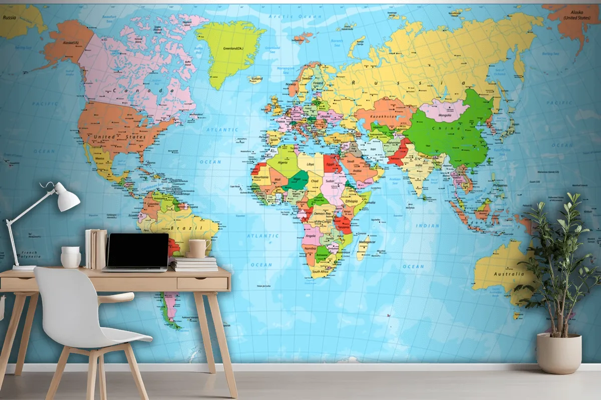 Fototapete Detaillierte Politische Weltkarte Mit Hauptstädten