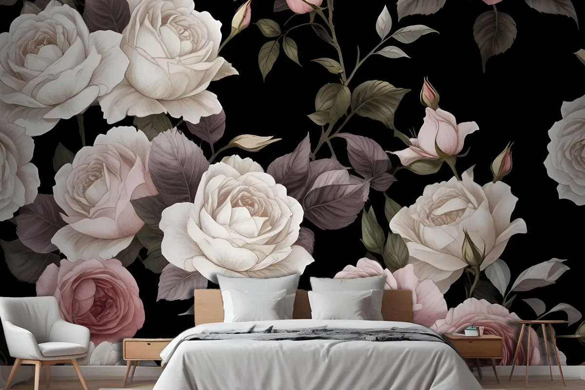 Fototapete Dunkle Blumen In Lila Und Rosa