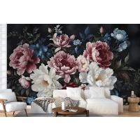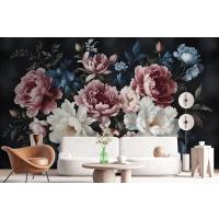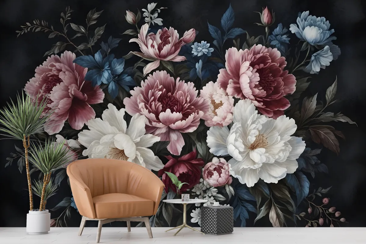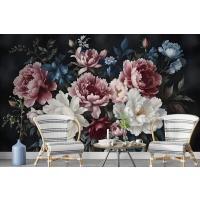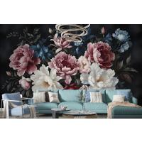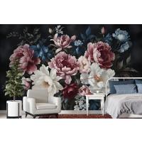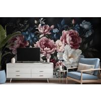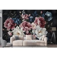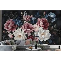 Fototapete Dunkle Pfingstrose Mit Blumenmuster In Aquarell