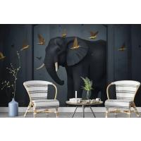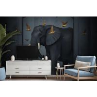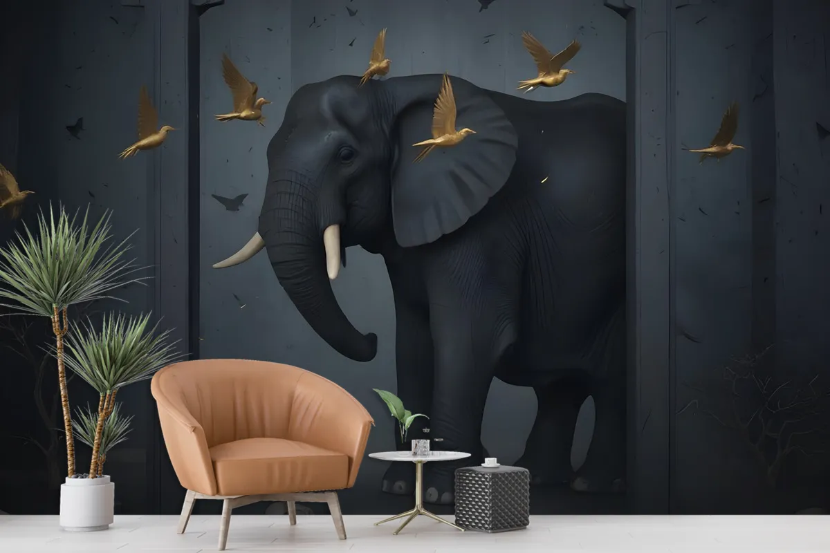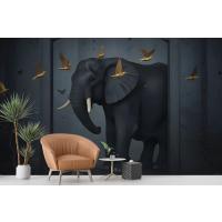 Fototapete Dunkler Elefant Und Vögel In 3DPrägeoptik