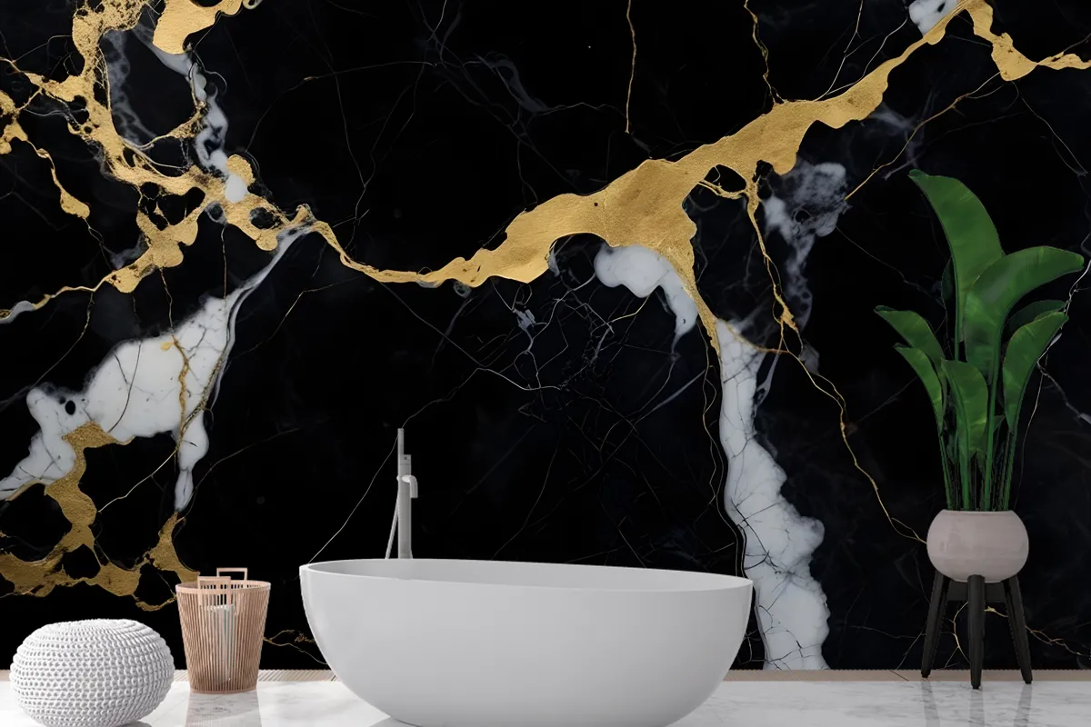 Fototapete Dunkler Marmoreffekt In Schwarz Und Gold