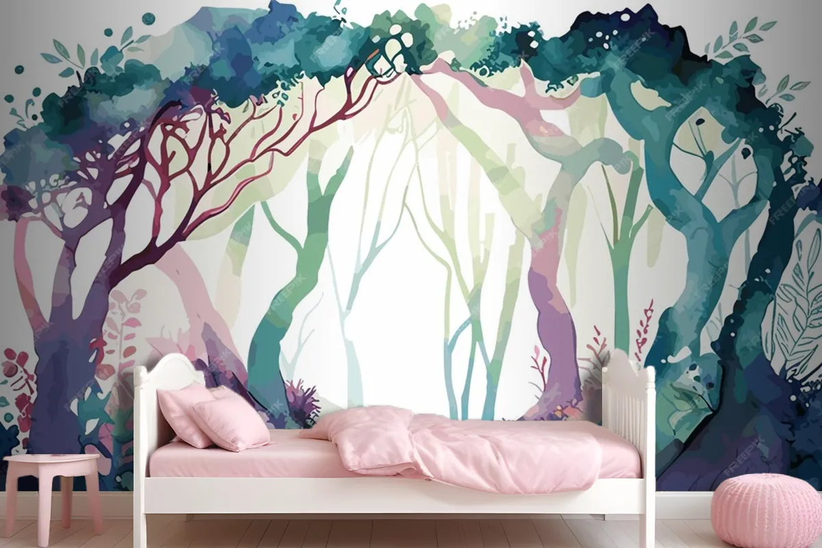 Fototapete Ein Aquarell Eines Waldes Mit Einem Dorthin Führenden Pfad