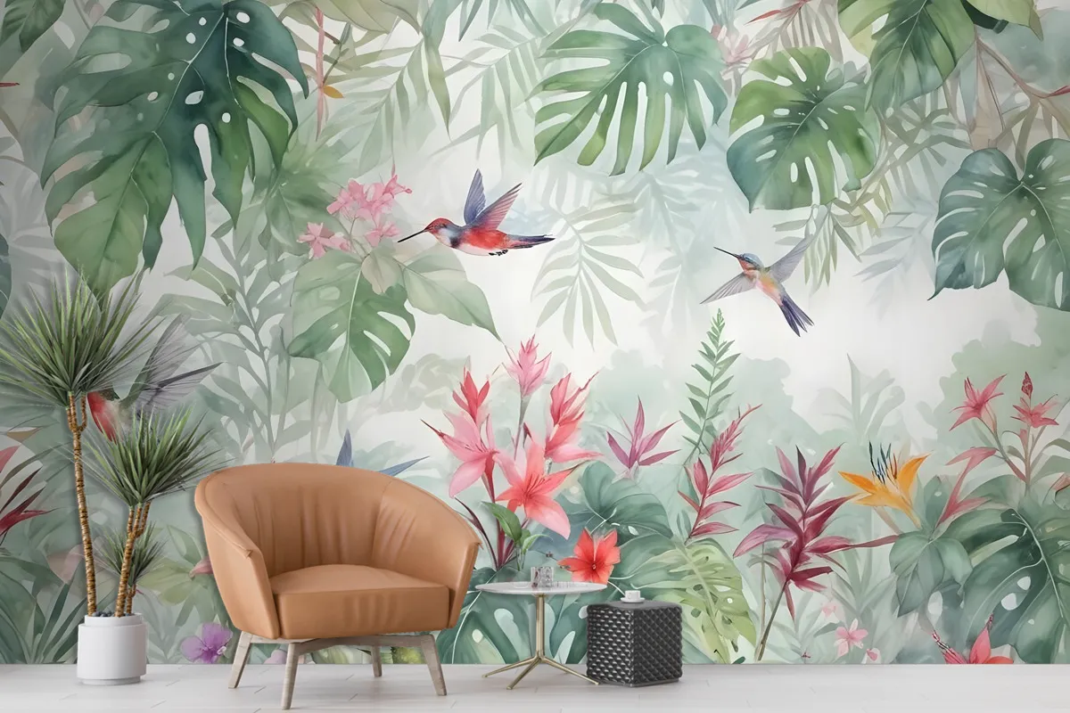 Fototapete Farbenfrohe Tropische Exotische Kaktusblumen Mit Kleinen Vögeln