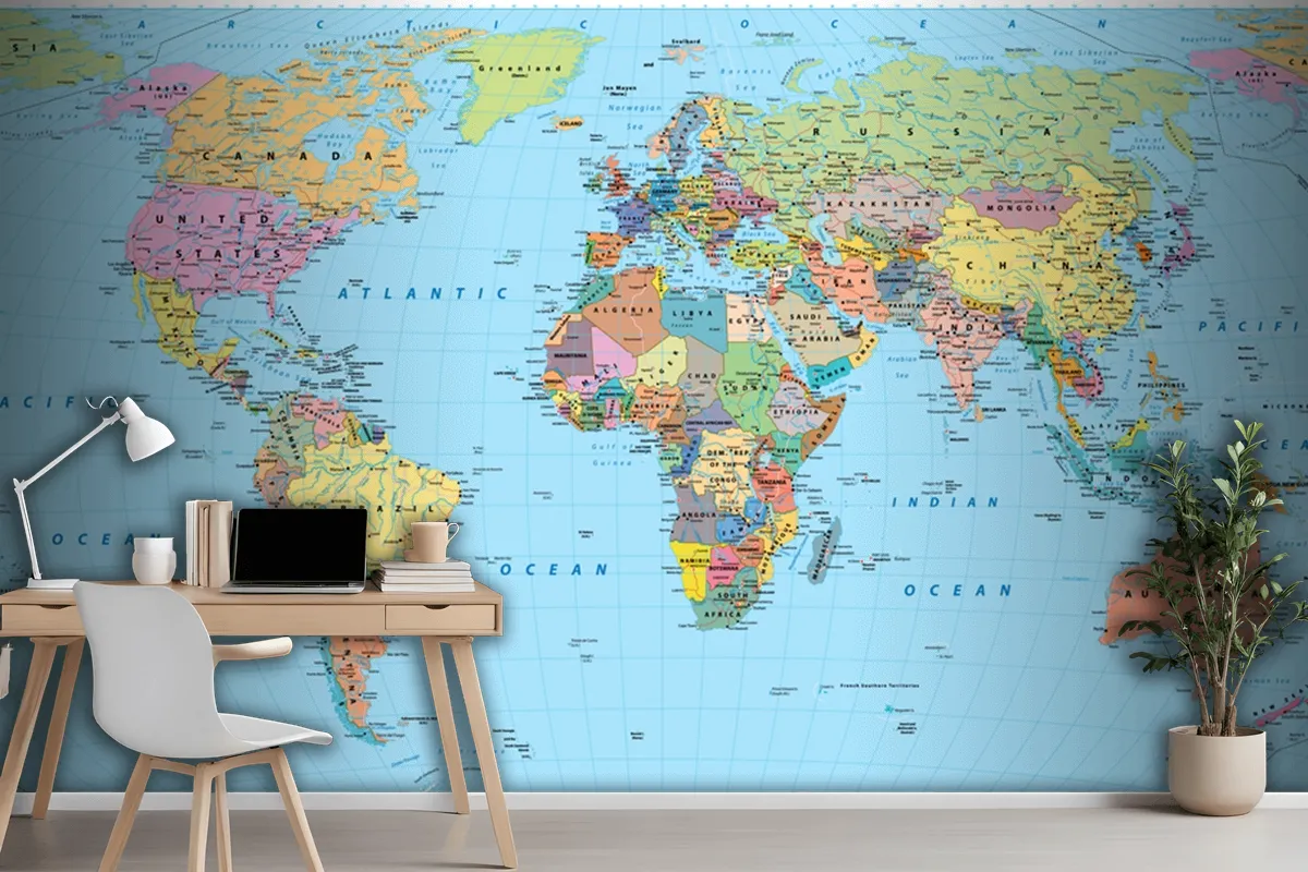 Fototapete Farbige Weltkarte Mit Grenzen Ländern Straßen Und Städten