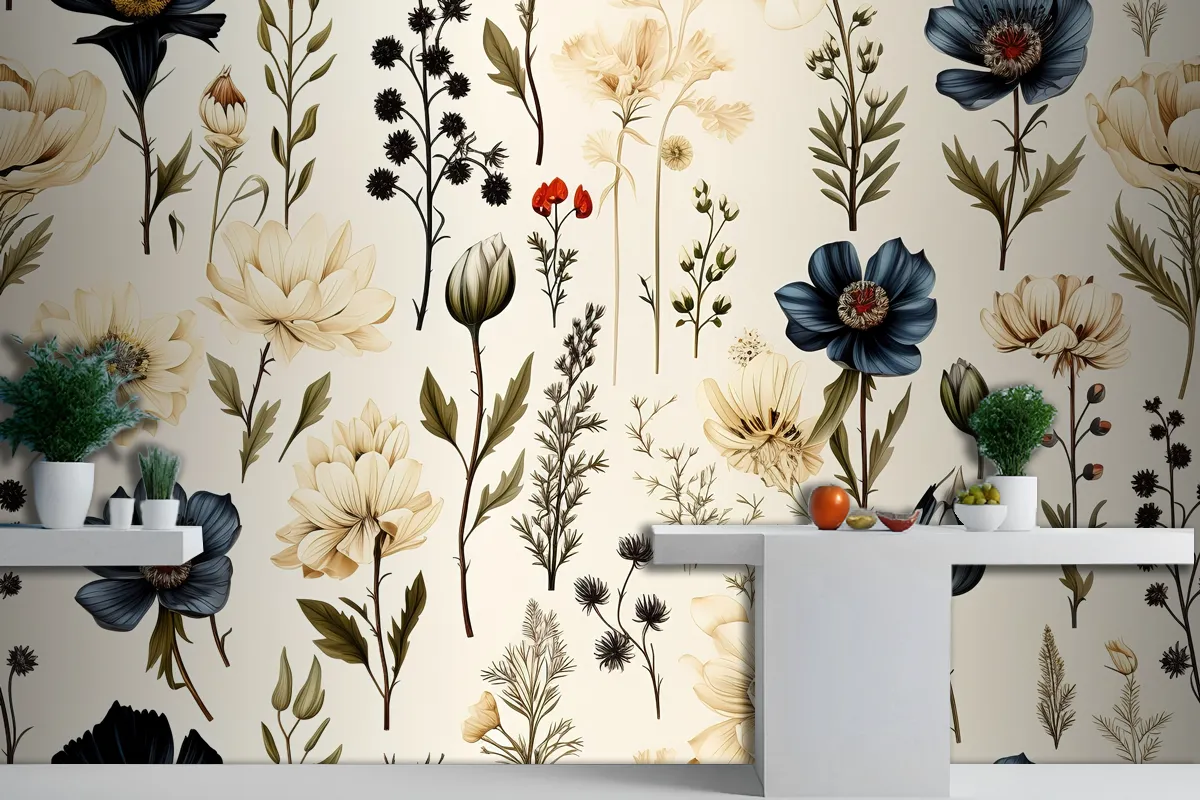 Fototapete Florales Nahtloses Muster Zarte Und Lebendige Blüten