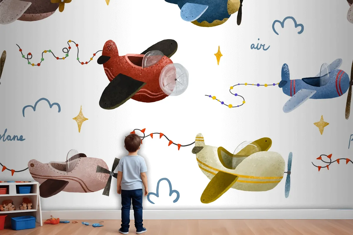 Fototapete Flugzeuge Und Wolken Im Skandinavischen Stil Für Jungen
