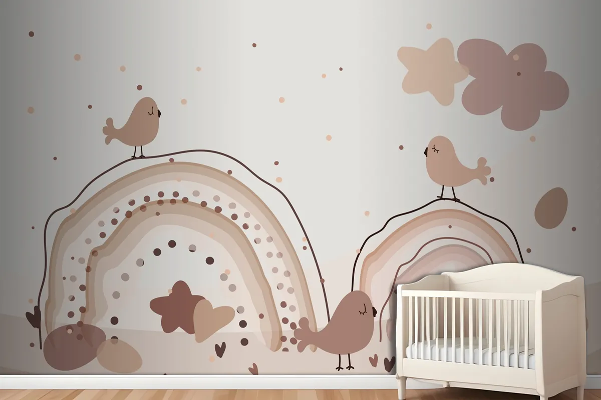 Fototapete Frohe Ostern Aquarell Regenbogen Beige
