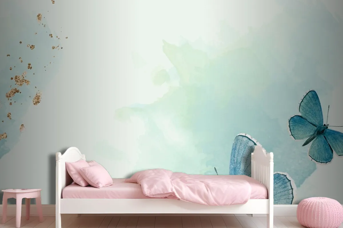 Fototapete Gemusterter Hintergrund Mit Blauen Schmetterlingen