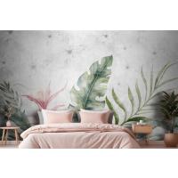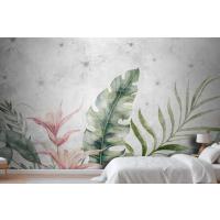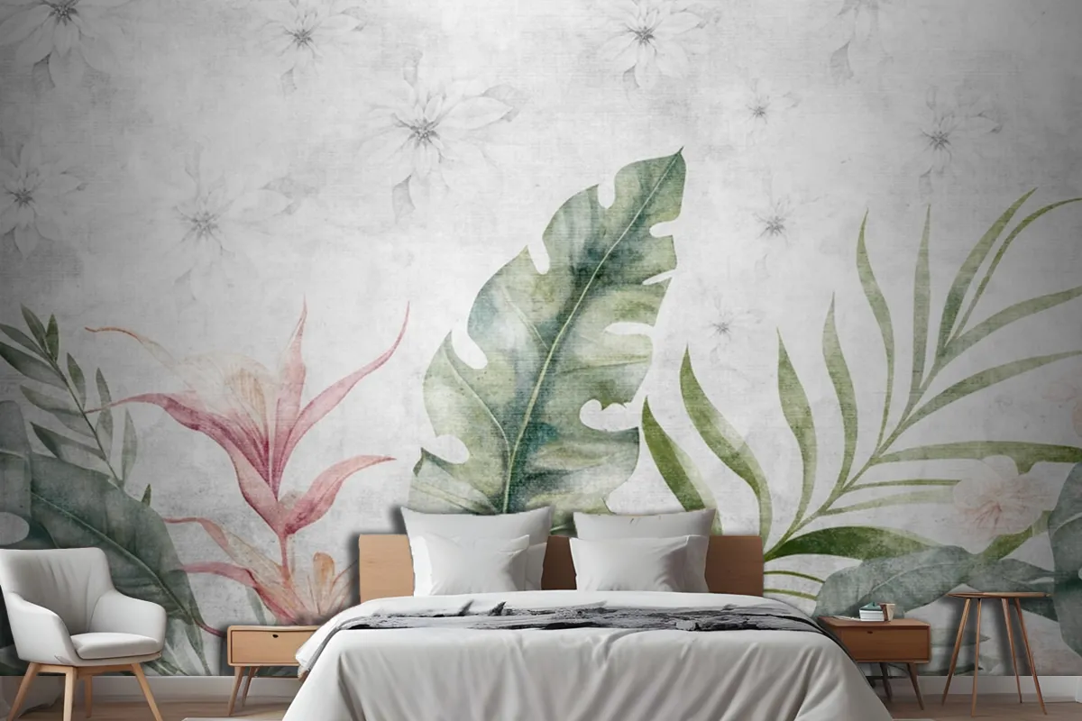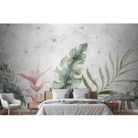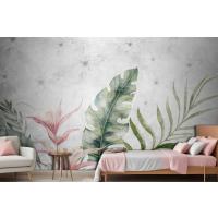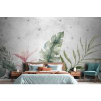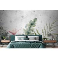 Fototapete Grüne Zweige Und Blätter Auf Zeichnung In Grau