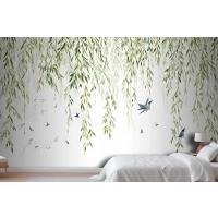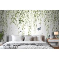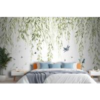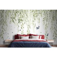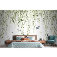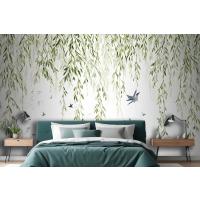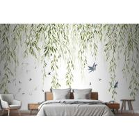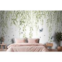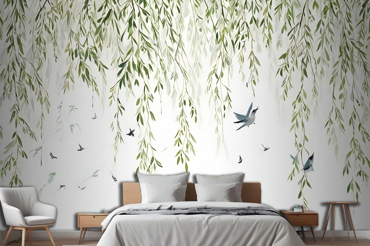 Fototapete Hängende Weidenzweige Mit Vögeln Auf Weißem Hintergrund