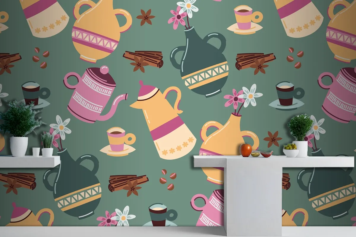 Fototapete Handgezeichnetes Buntes Kaffeemuster