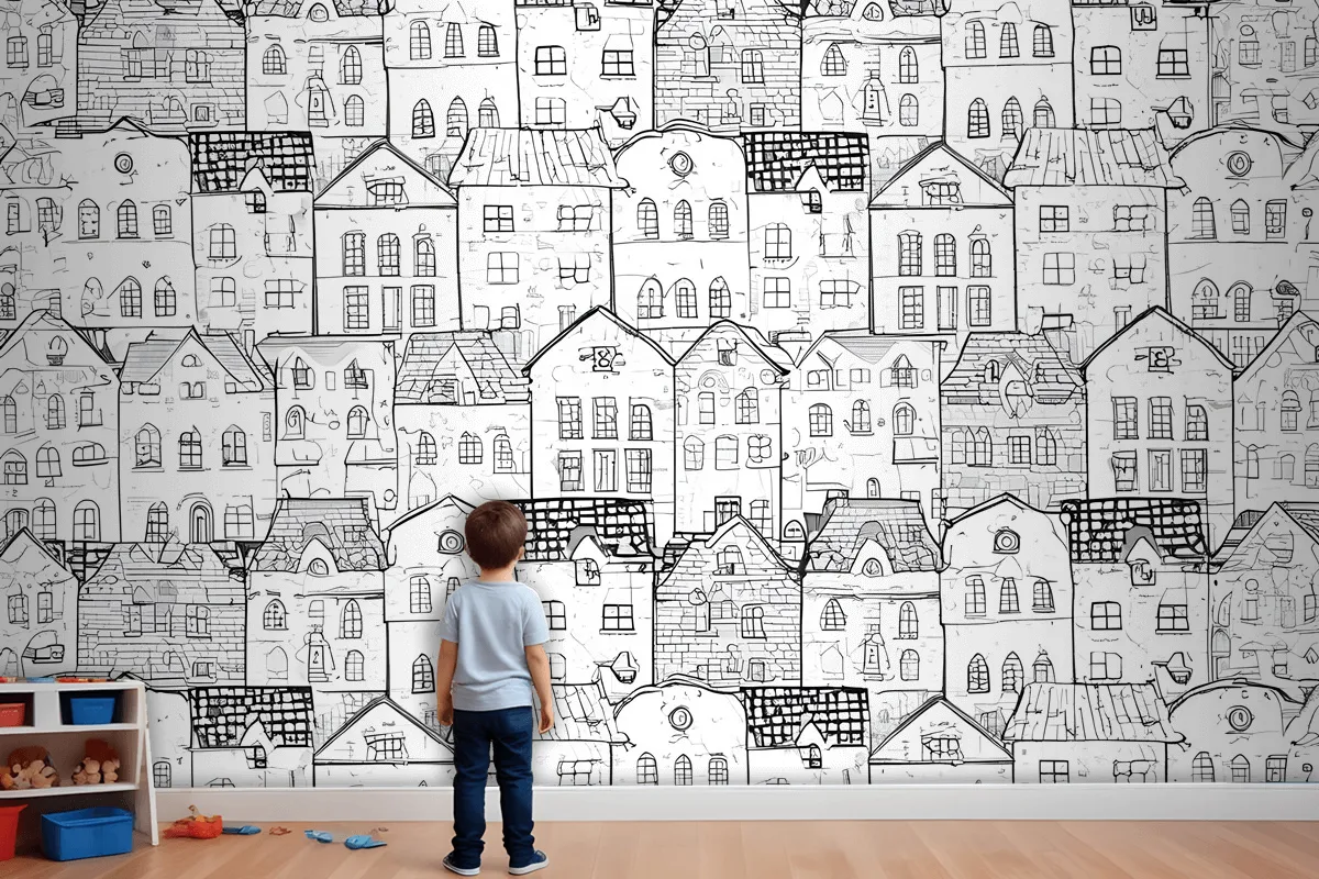 Fototapete Hausskizze In Schwarzweiß Für Kinder