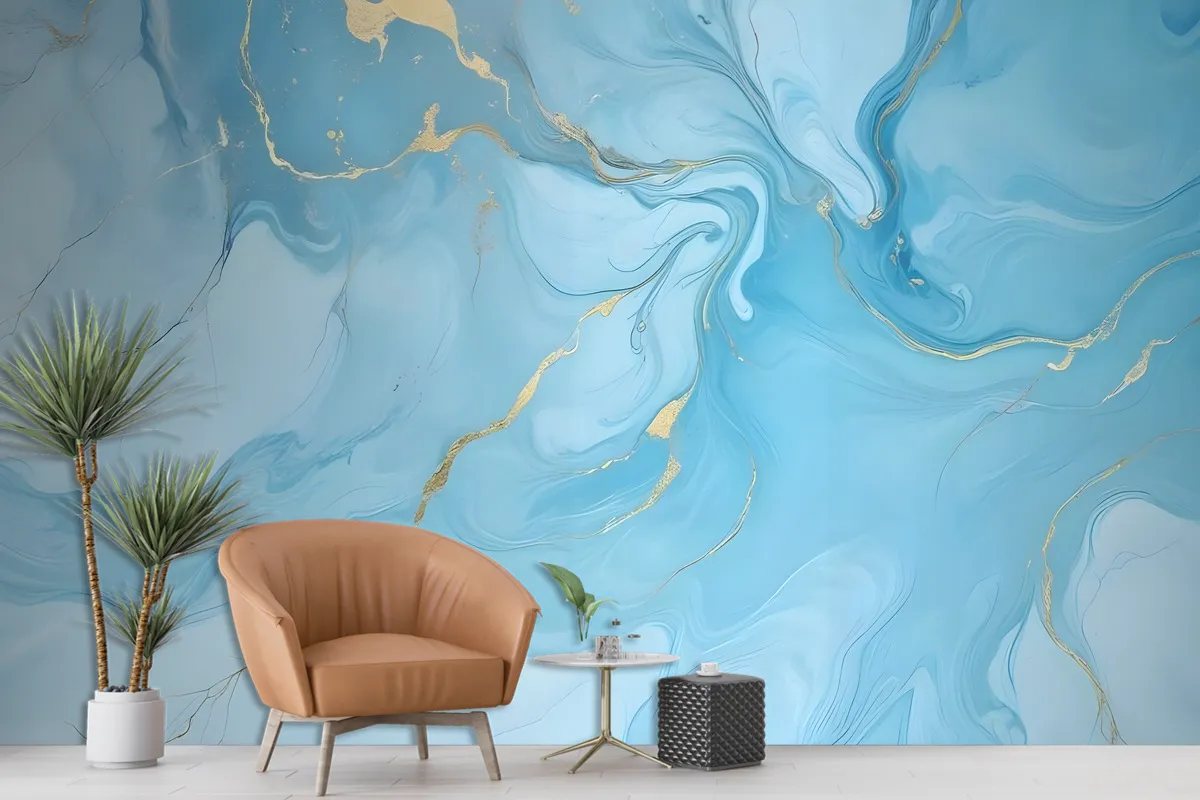 Fototapete Hellblauer Marmor Mit Spritzern In Goldoptik
