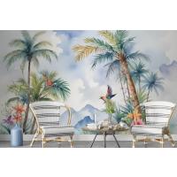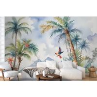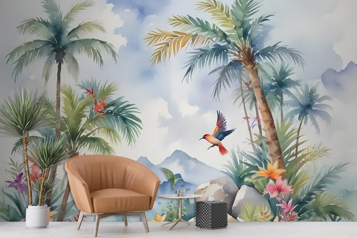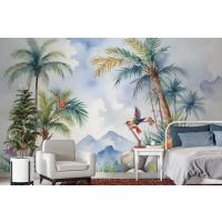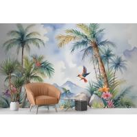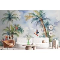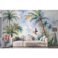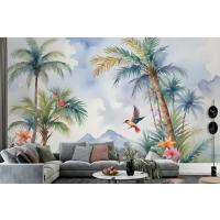 Fototapete Kunstgemälde Bunte Landschaft Mit Vögeln