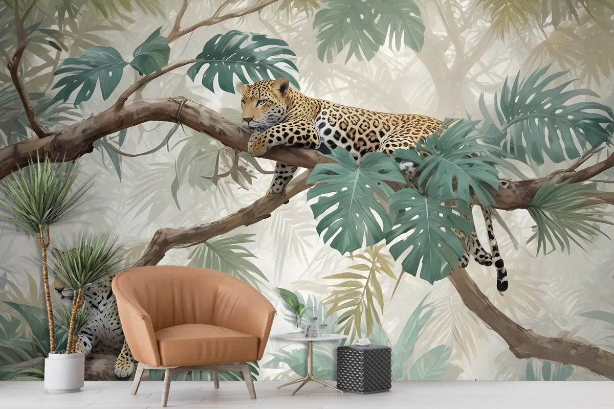 Fototapete Leoparden Auf Einem Ast Im Dschungel