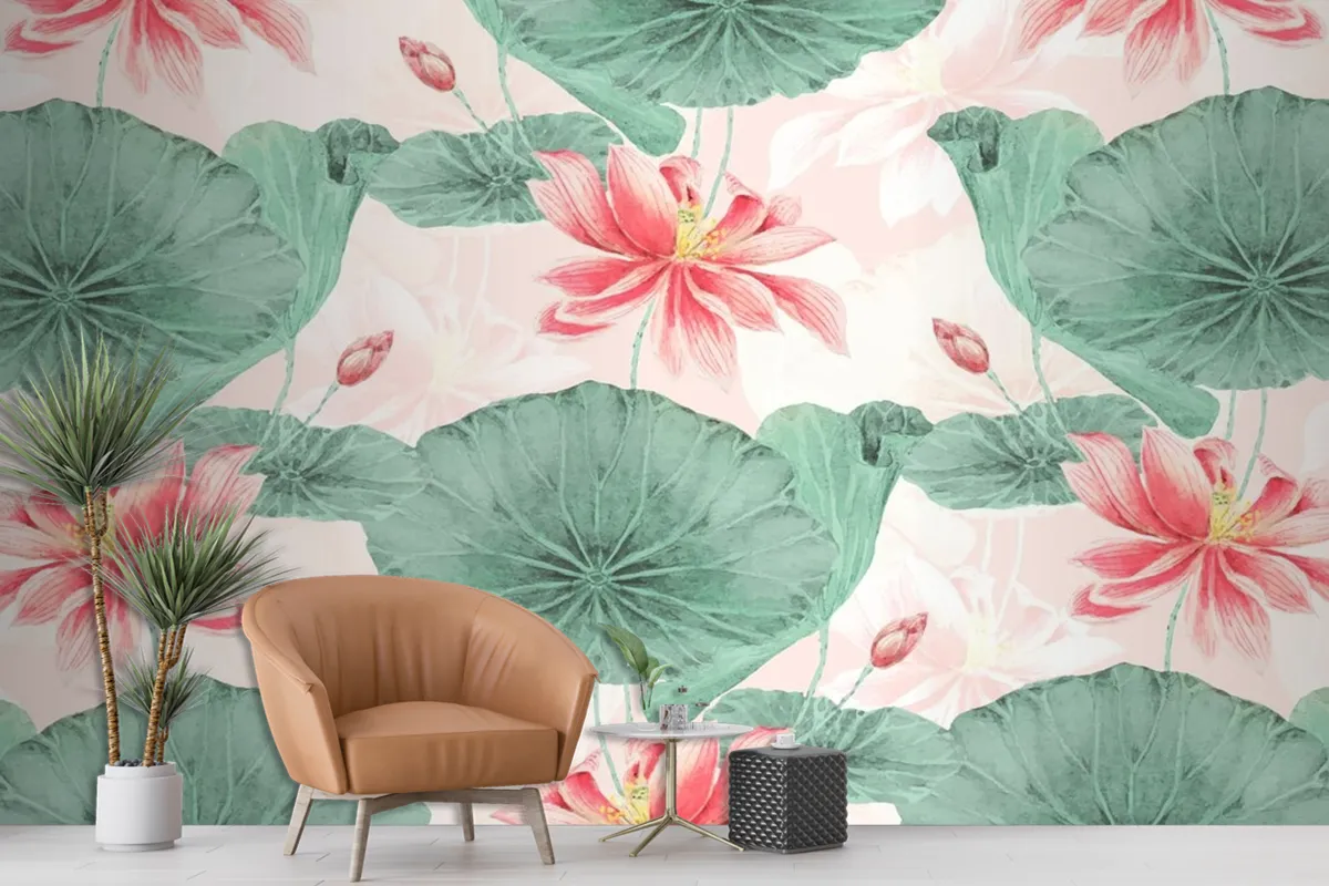 Fototapete Lotusmuster Botanischer Hintergrund