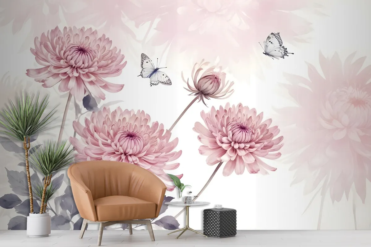 Fototapete LöwenzahnBlumenkunst Im RetroAquarellStil In Rosa