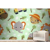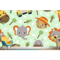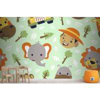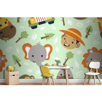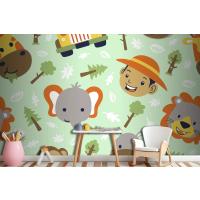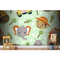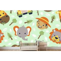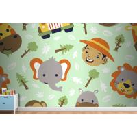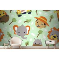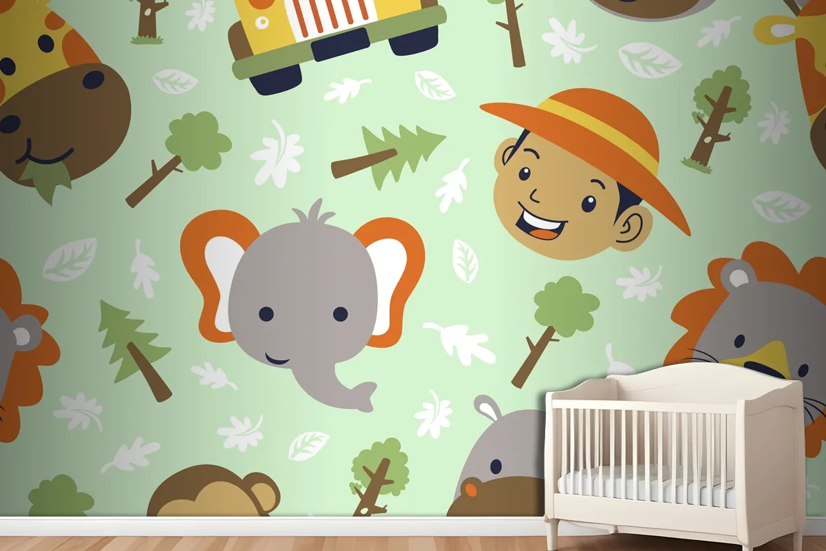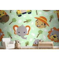Fototapete Lustiger SafaritierkopfCartoon Mit Kleinem Jungenkopf Auf Nahtlosem Muster