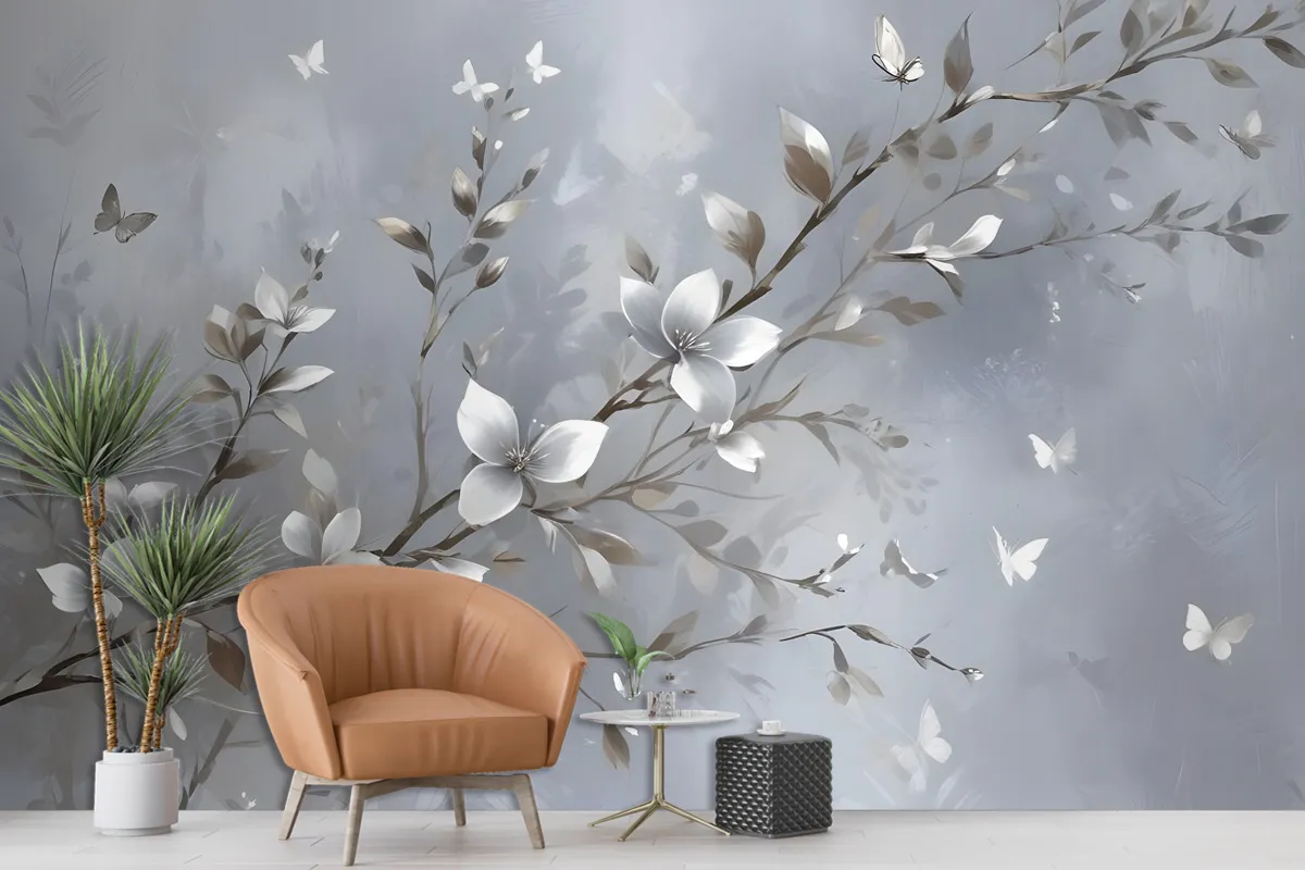 Fototapete Magnolienblüte Und Schmetterling In 3DPrägeoptik