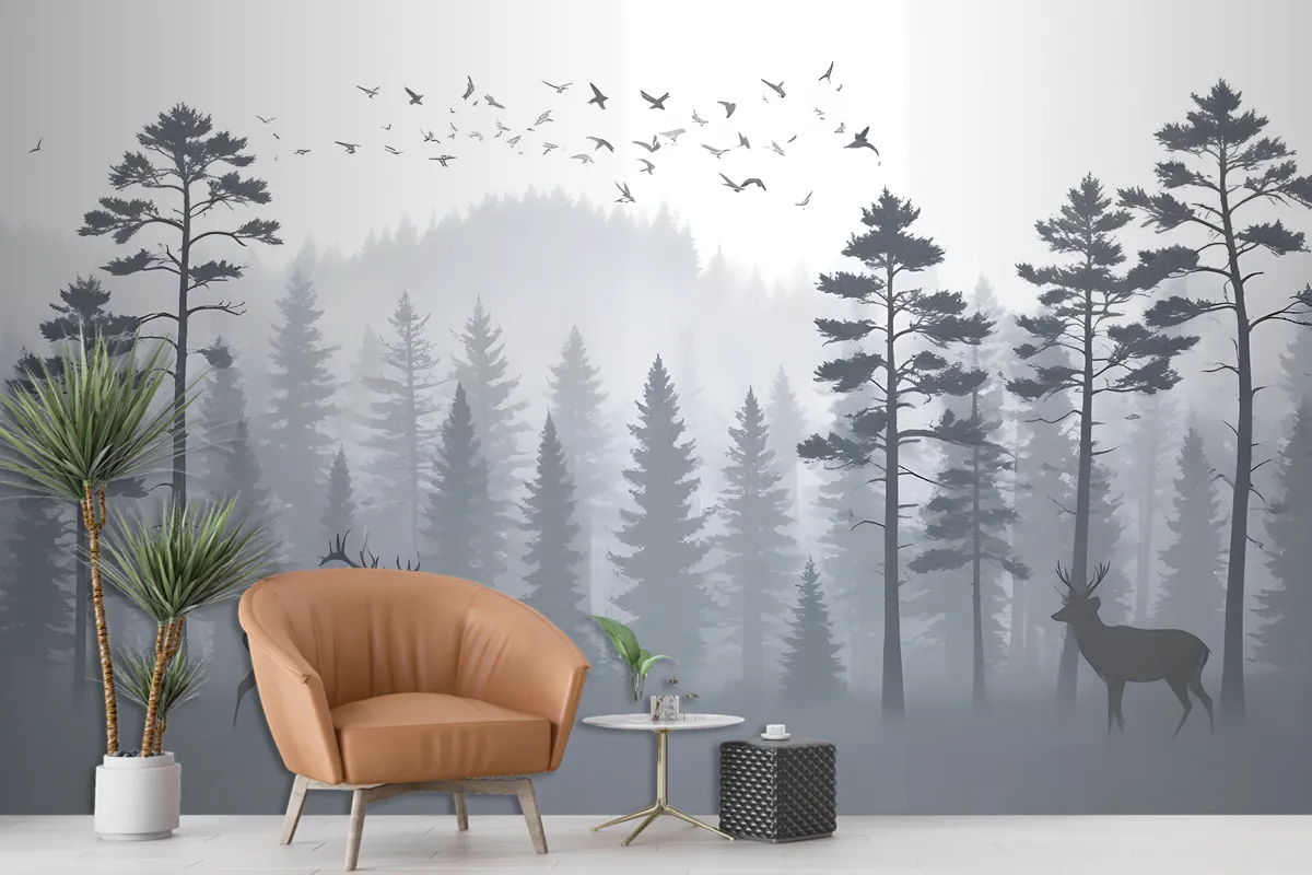 Fototapete Monochrome Berg Und Waldlandschaft